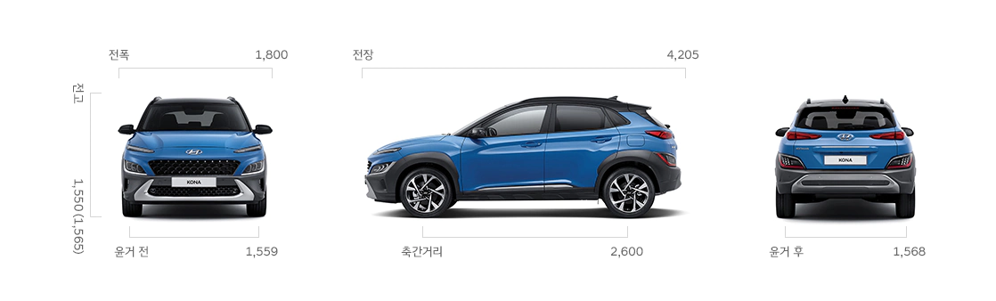 내부 사이즈는 축간거리를 통해 어느정도 유추가 가능하고, 정확한 제원을 공개하지 않아서 제외했다. (내부는 사실 비등비등하고 최대 2명이 탈 것이기 때문에 의미 없다고 판단했다.)