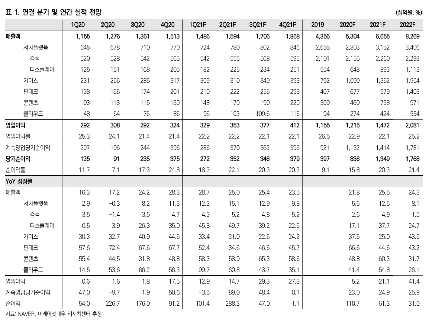 네이버 주가 전망을 위한 종목분석 리포트 요약