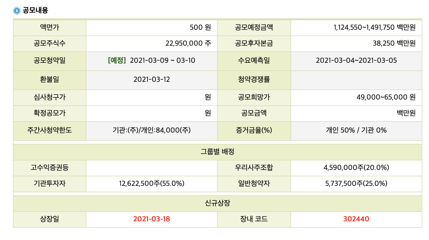 공모가는 49,000원에서 65,000원사이의 희망가를 제출했다.