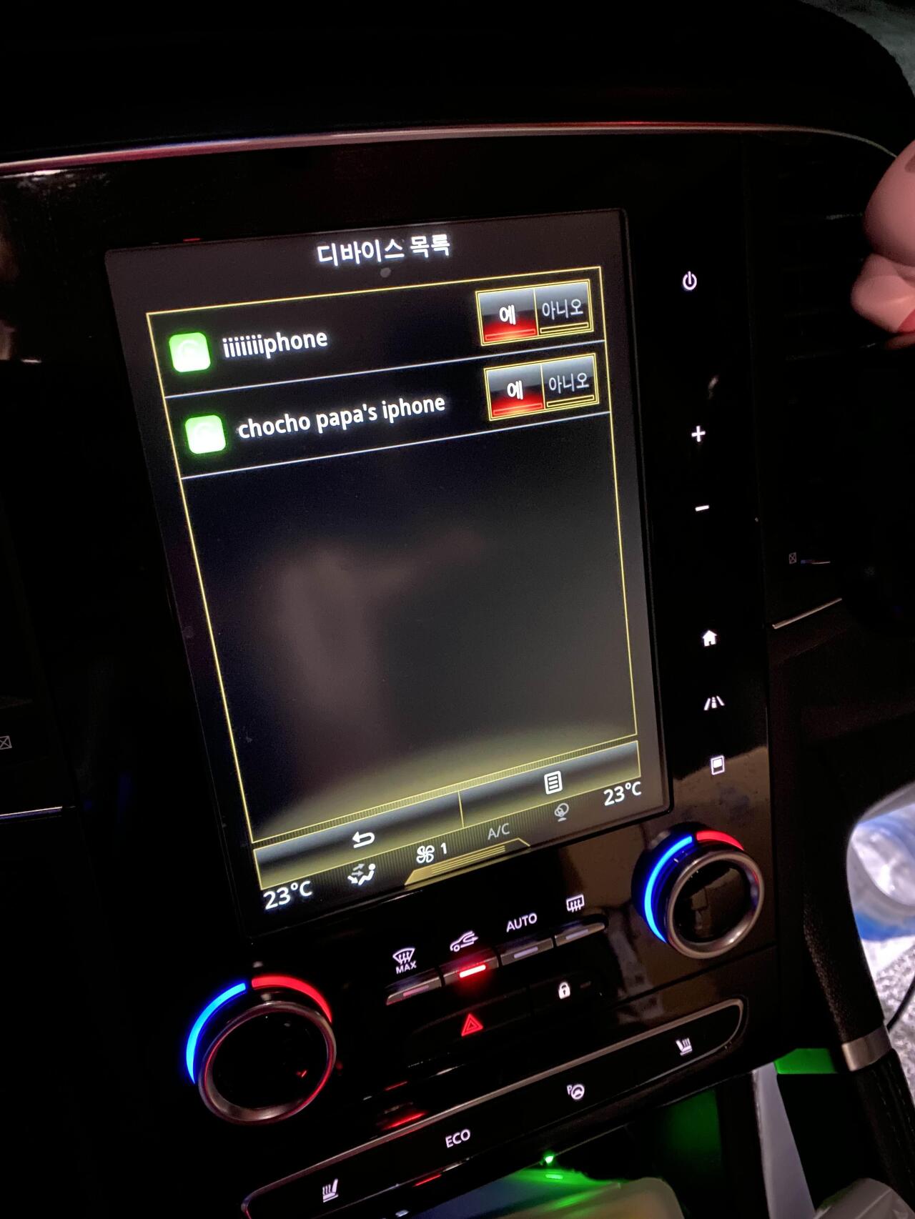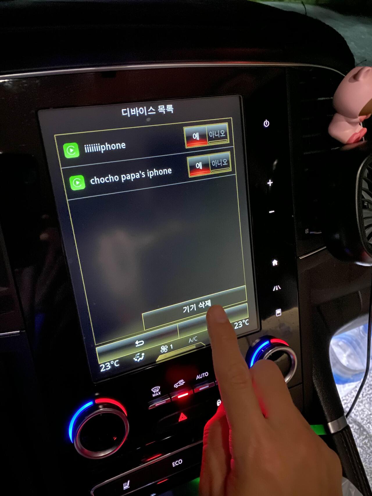 애플 카플레이는 아이폰을 연결하면 자동으로 실행이 되는 프로그램이다. 별도로 설정을 바꾸거나 하지 않아도 된다는 말이다. 내 아이폰은 QM6와 연결되어 있는 케이블에 꽂으면 자동으로 애플 카플레이가 실행이 되는데, 와이프의 아이폰은 케이블에 연결해도 애플 카플레이가 자동으로 실행이 안되었다. 한참 알아보니 이미 QM6에 와이프의 아이폰이 등록되어 있었기 때문이였다.