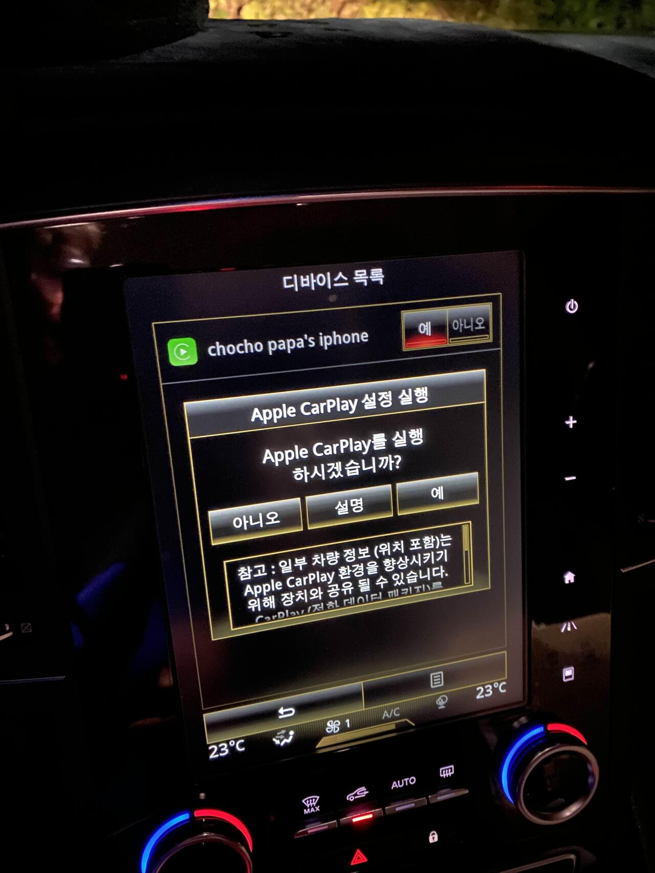 그런 다음 스마트폰을 케이블에서 뺏다가 다시 끼우면 애플 카플레이를 실행하겠냐는 팝업이 뜬다.그러면 그 팝업창에서 '예'를 클릭하면 바로 카플레이가 실행이 된다.