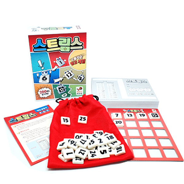 오름차순 빙고게임. 숫자가 적힌 타일과 게임에 필요한 용지만 있으면 사실상 전 지구인이 동시에 진행할 수 있는 유니크한 게임이다. 게임 방법은 간단하다. 사회자는 주머니에서 1~30까지의 숫자가 적힌 타일 1개를 꺼낸다. 참가자들은 용지의 1줄로 되어 있는 빈 칸에 숫자를 적는다. 게임의 목표는 빈 칸에 적은 숫자의 나열이 오름차순이 끊어지지 않도록 최대한 연결하는 것. 빈 칸 어느 곳에 숫자를 배치해야 오름차순이 끊어지지 않고 연결될지 고민하는 것이 이 게임의 핵심이다. 이 게임의 묘미는 1~30까지 숫자타일 중 11~20까지의 타일은 2개씩 들어있다는 것이다. 숫자마다 나올 확률이 다르다는 것. 타일은 총 20번을 뽑는데, 후반에 갈 수록 내가 원하는 번호를 외치게 되는 진풍경을 볼 수도 있다. 스트림스 연습게임 1번, 실전게임 1번을 진행한다면 아무리 사람이 많은 모임이라도 쉽게 커버 가능하다.
