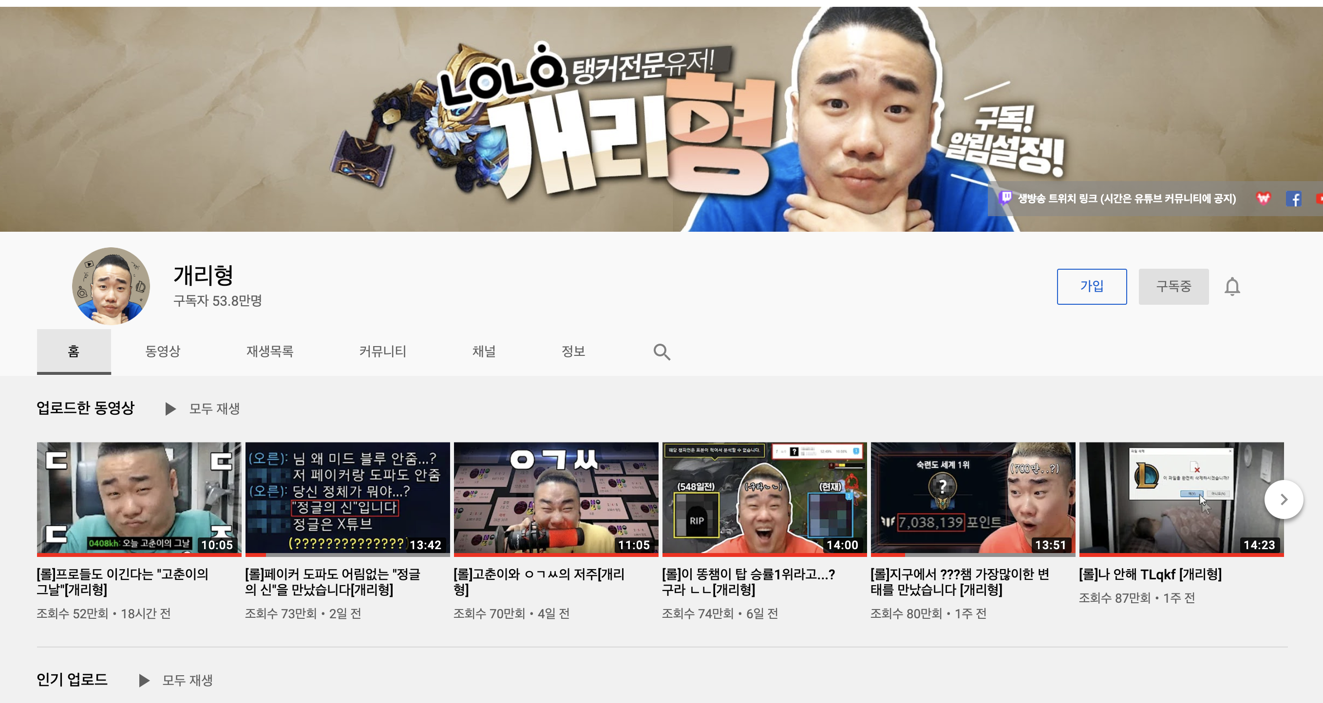 리그 오브 레전드는 자타가 공인하는 최고의 온라인게임 중 하나다. PC방 점유율이 몇년 째 1위를 유지하고 있고, 전 세계 리그의 최고만 모인다는 이른바 롤드컵의 경우 수억명이 시청할 정도니 말이다. 때문에 리그 오브 레전드와 관련한 콘텐츠를 중심으로 한 유튜브들이 많다. 게임의 정보를 모아 보여주는 방송, '실력 방송', '강의 방송'이라 불리우는 고수들의 게임 방송, 한 때 프로게이머였던 선수들이 운영하는 개인방송 등 종류도 다양하다. 그 중에서도 유난히 눈에 띄는 채널이 있다. 바로 '개리형 유튜브'다. 오늘 기준으로 약 54만명의 구독자를 보유하고 있는, 리그 오브 레전드 유튜버 중에도 최상위권에 위치해 있다. 무려 리그 오브 레전드 한국 리그 채널인 'LCK' 구독자보다도 많다. 그는 어떻게 성공할 수 있었을까?