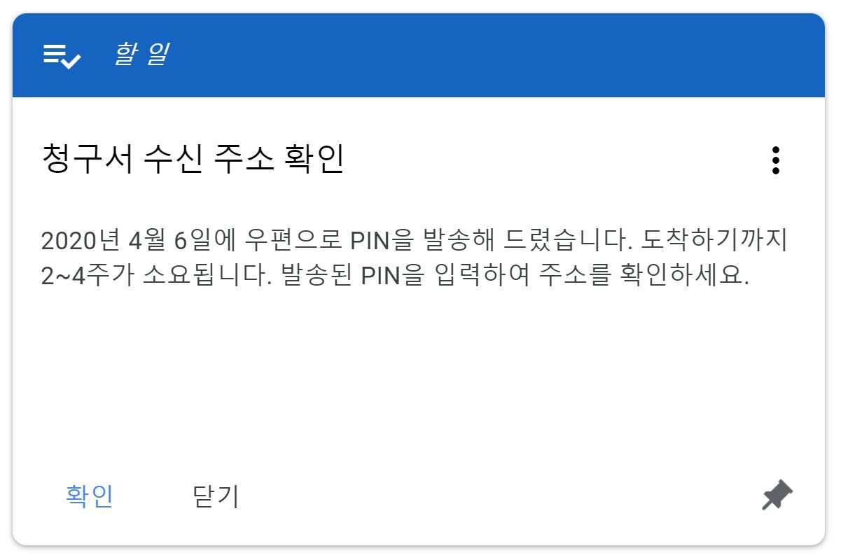 자세히 읽어보면 우편으로 PIN 번호를 보냈다고 한다. 하지만 세월아 네월아 언제 오는지, 제대로 오기는 할련지.