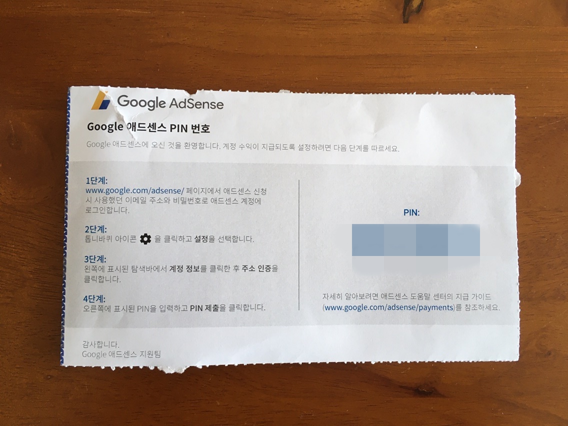 구글 애드센스에 들어가서 주소확인을 위한 핀번호를 입력하면 된다. 보통은 대시보드에 핀번호 입력창이 나오기 때문에 그곳에 입력을 하면 되고, 구글에서 온 우편물에서 안내하는대로 진행을 해도 무방하다.
