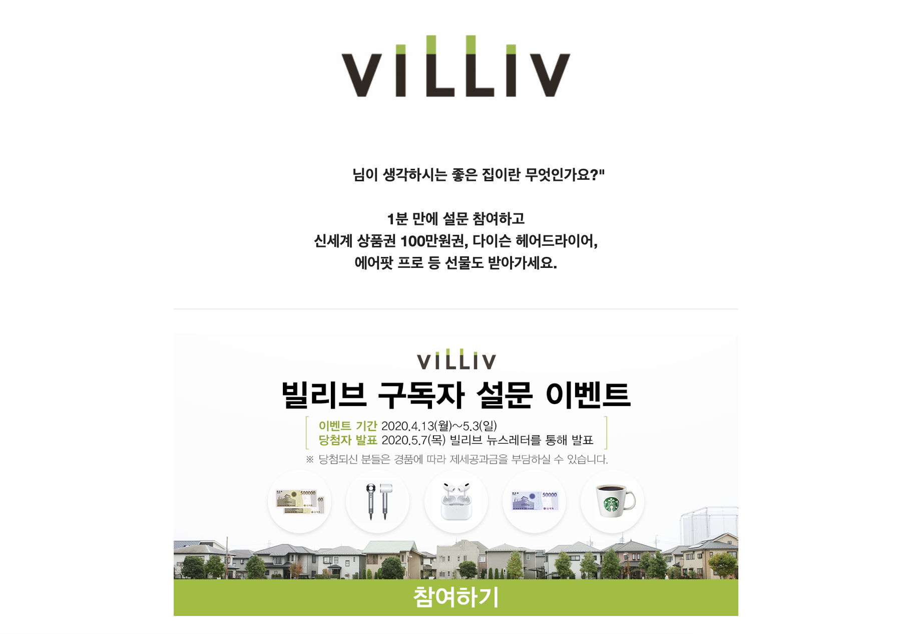 신세계건설에서 운영하는 빌리브라는 사이트에서는 집과 라이프스타일에 관한 뉴스레터를 발송한다. 나는 관심있는 콘텐츠이기에 당연히 구독을 하고 있다. 한번은 구독자 설문 이벤트로 이런 주제가 왔다. ‘구독자님이 생각하는 좋은 집이란 무엇인가요?’
