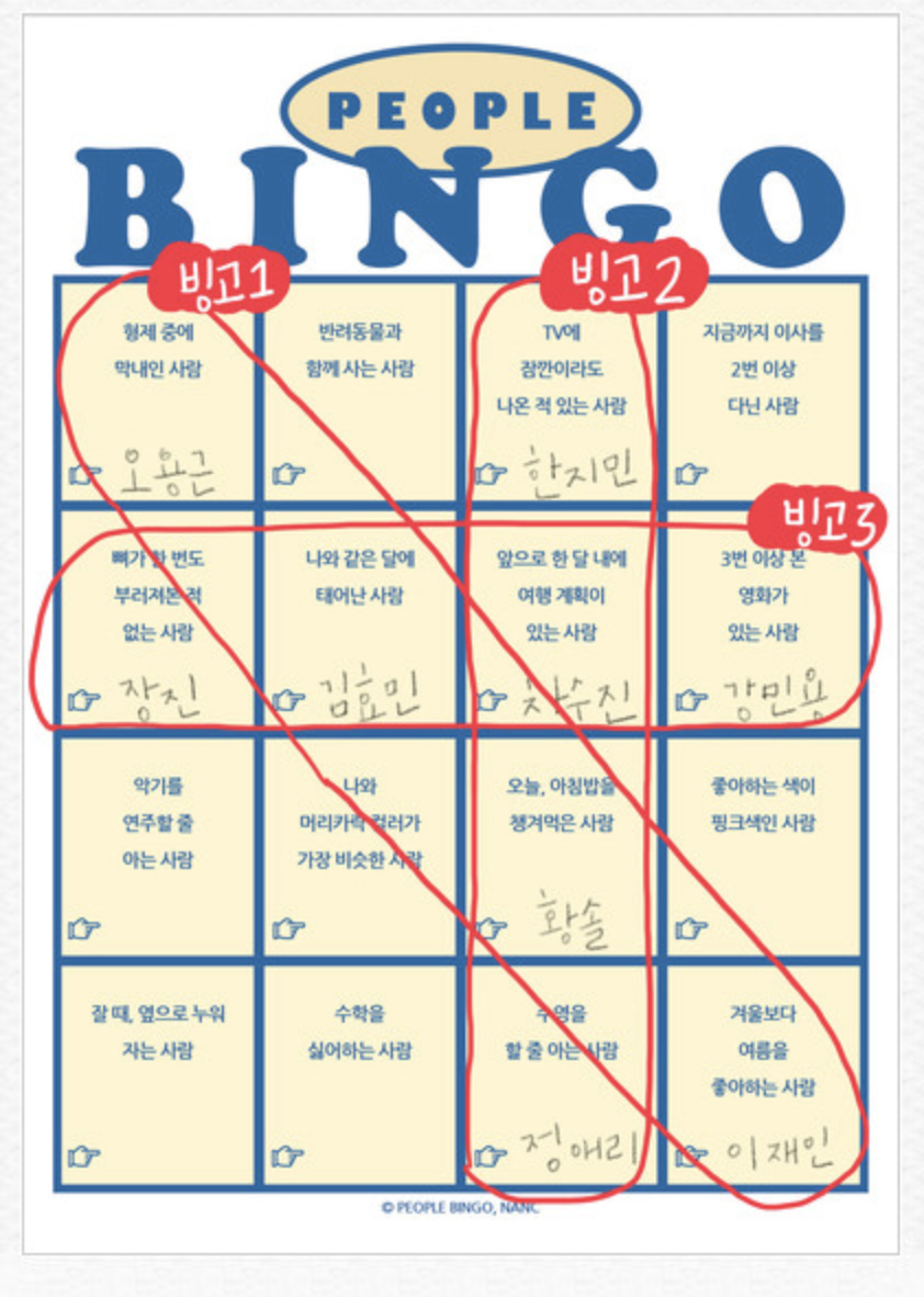 [피플 빙고] 사람을 찾아라! 아이스브레이킹을 위한 빙고 게임 : NANC