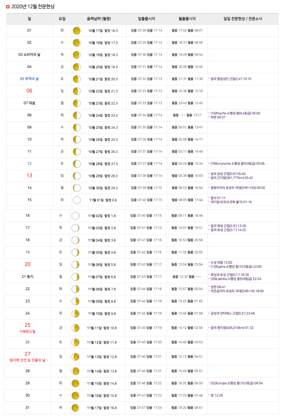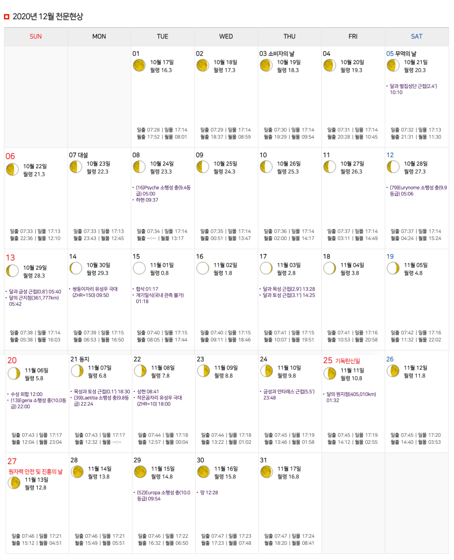2020년 12월 오늘 달 모양은 달력형과 세로형으로 구분해서 올려놓으니 아래 이미지를 참고.